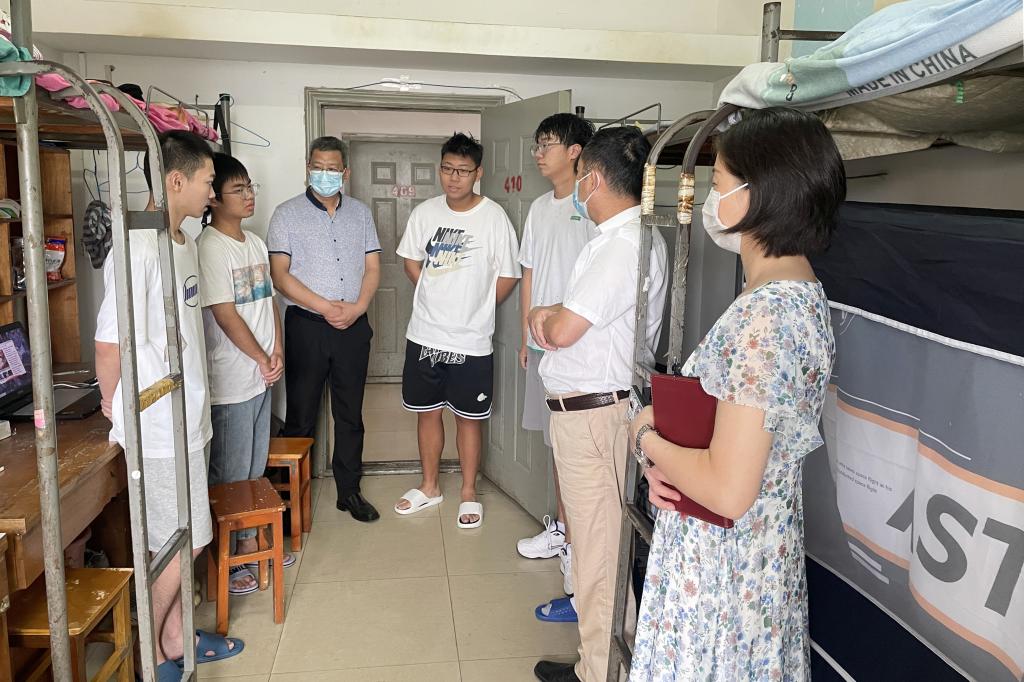 “到学校还适应吗?”“家是哪里的?”“有什么需要解决的困难吗?”……每到一个学生宿舍,吴国平都亲切的与新生们交流,细心了解了同学们来自哪里、所学专业和住宿生活是否习惯及新生线上入学教育的学习情况。吴国平耐心叮嘱他们,要积极适应大学校园生活,与同学精诚团结、和谐相处;培养良好的生活习惯,做好个人疫情防护,积极培养体育运动爱好;增强安全意识,注意人身和财产安全,防范电信网络诈骗,遇到困难及时报告辅导员。希望他们热爱学校、热爱学习,树立远大志向,不负青春韶华,以昂扬向上的精神面貌开启美好大学时光。